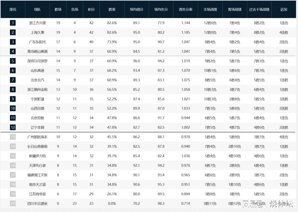 至此,宁波男篮斩获3连胜,总成绩12胜11负胜率再度超过50%,最新排名也升至第9位。北控男篮的4连胜状态就此终结,胜率再度低于50%,好在排名仍在季后赛区域。